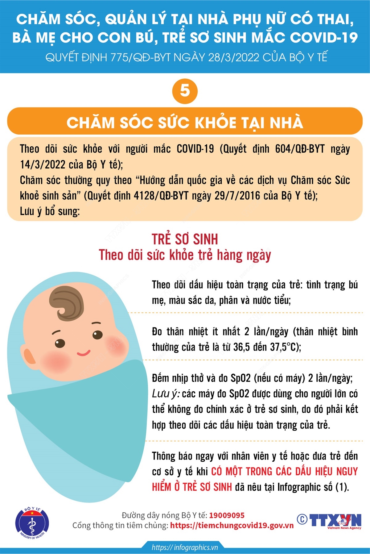 Theo dõi sức khỏe hàng ngày trẻ sơ sinh mắc COVID-19 tại nhà