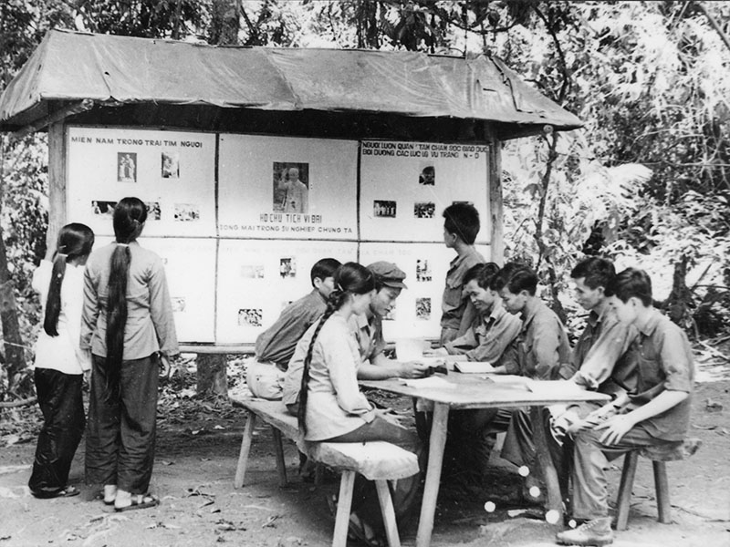 | Khu sinh hoạt văn hóa của Ban Tuyên huấn khu V trong đó có tiểu ban TTXGP Trung Trung bộ và Đài Minh ngữ TTXGP |