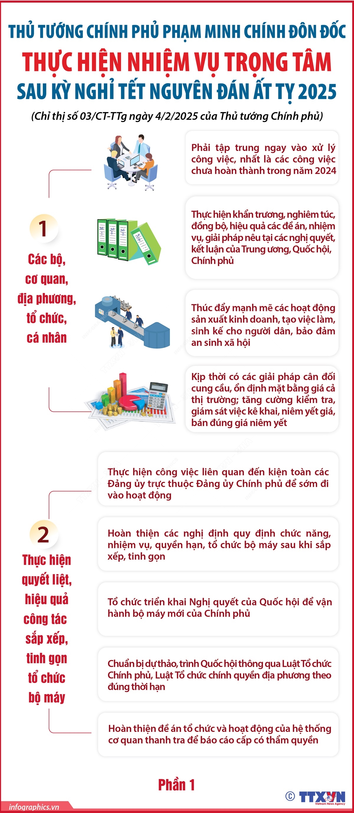 Thủ tướng đôn đốc thực hiện nhiệm vụ trọng tâm sau kỳ nghỉ Tết nguyên đán Ất Tỵ 2025 (Phần 1)