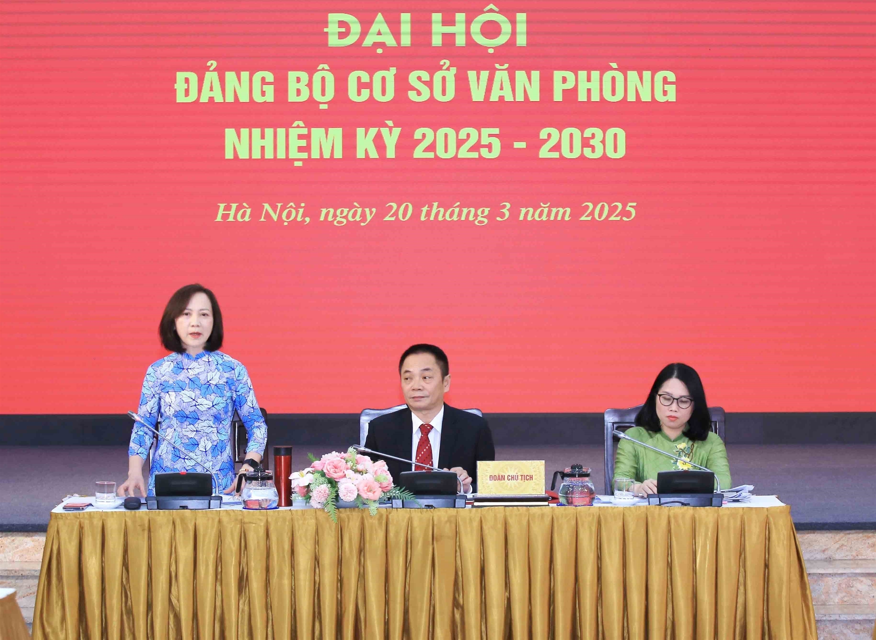 Phát biểu chỉ đạo tại Đại hội, Bí thư Đảng ủy, Tổng giám đốc Vũ Việt Trang đánh giá cao những kết quả nổi bật của Đảng bộ Văn phòng trong nhiệm kỳ vừa qua, qua đó, tạo chuyển biến quan trọng trong công tác tham mưu, tổng hợp, đáp ứng yêu cầu của Chính phủ, Ban lãnh đạo ngành; công tác văn thư-lưu trữ được bảo mật, hỗ trợ hiệu quả điều hành; công tác pháp chế, kiểm tra được thực hiện nghiêm túc; hoạt động hành chính, quản trị, hậu cầu đáp ứng tốt yêu cầu công tác; quản lý, điều động xe kịp thời và đảm bảo an ninh trật tự. Công tác xây dựng Đảng đạt kết quả thiết thực, công tác phát triển đảng viên, kiểm tra, giám sát hiệu quả. Nhiệm kỳ 2025-2030, Đảng bộ Văn phòng xác định rõ trách nhiệm trong giai đoạn mới, tập trung nâng cao chất lượng công tác tham mưu, tổng hợp; tăng cường ứng dụng công nghệ, đẩy mạnh chuyển đổi số theo tinh thần Nghị quyết 57 của Bộ Chính trị; tái cơ cấu các đơn vị cấp phòng, thực hiện tinh gọn bộ máy, nâng cao hiệu quả hoạt động theo tinh thần tổng kết Nghị quyết 18; đổi mới công tác xây dựng Đảng; đảm bảo an ninh, an toàn và môi trường làm việc chuyên nghiệp.
