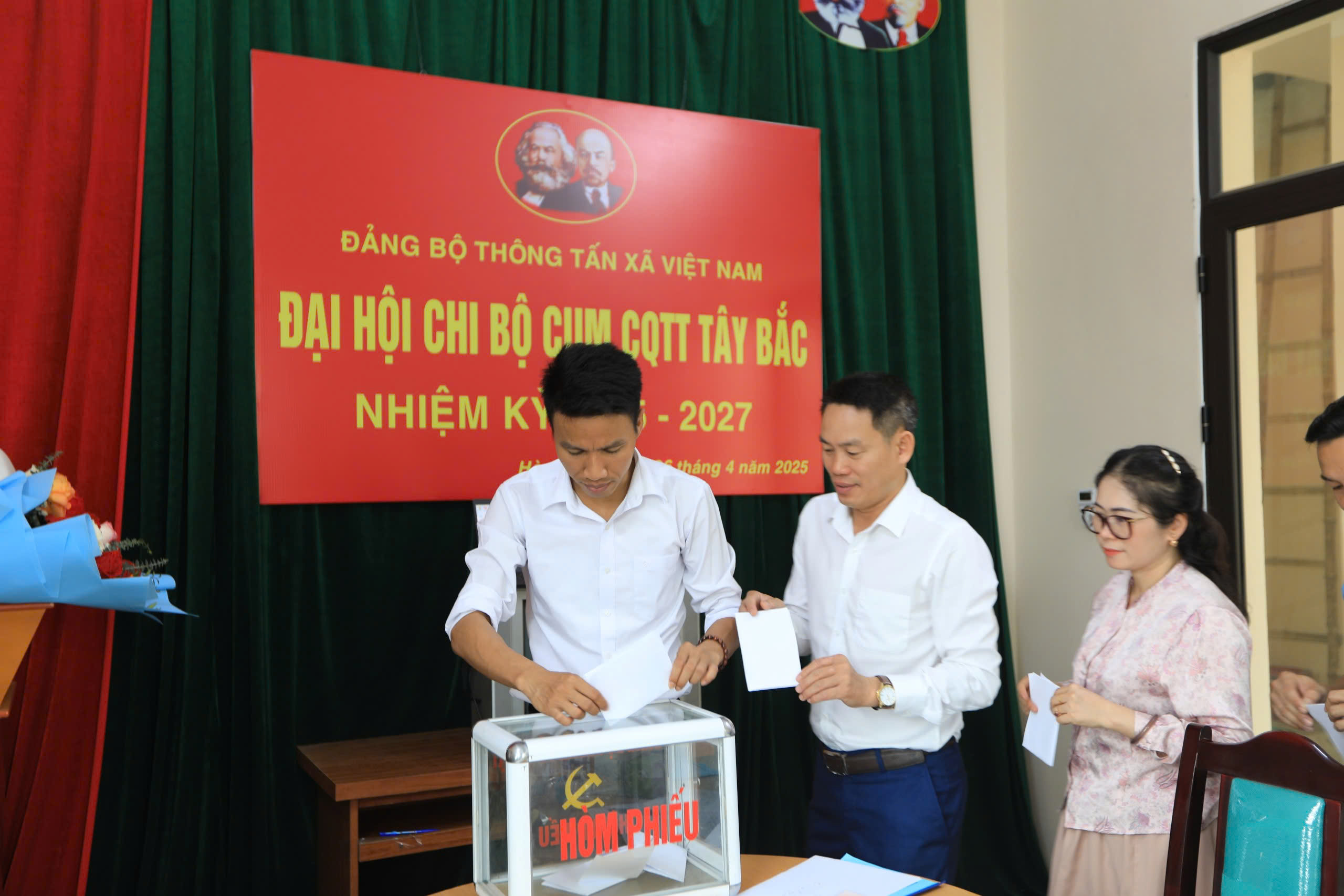 Chi bộ Cụm CQTT Tây Bắc đã bầu đồng chí Bùi Thanh Hải, Trưởng CQTT tại Hòa Bình là Bí thư chi bộ; đồng chí Nguyễn Hồng Cường, Trưởng CQTT tại Sơn La là Phó bí thư Chi bộ nhiệm kỳ 2025-2027. Đại hội cũng đã bầu đại biểu dự Đại hội đại biểu Đảng bộ TTXVN lần thứ XXVII, nhiệm kỳ 2025-2030 gồm 1 đại biểu chính thức và 1 đại biểu dự khuyết, đảm bảo các quy định về bầu cử trong Đảng.