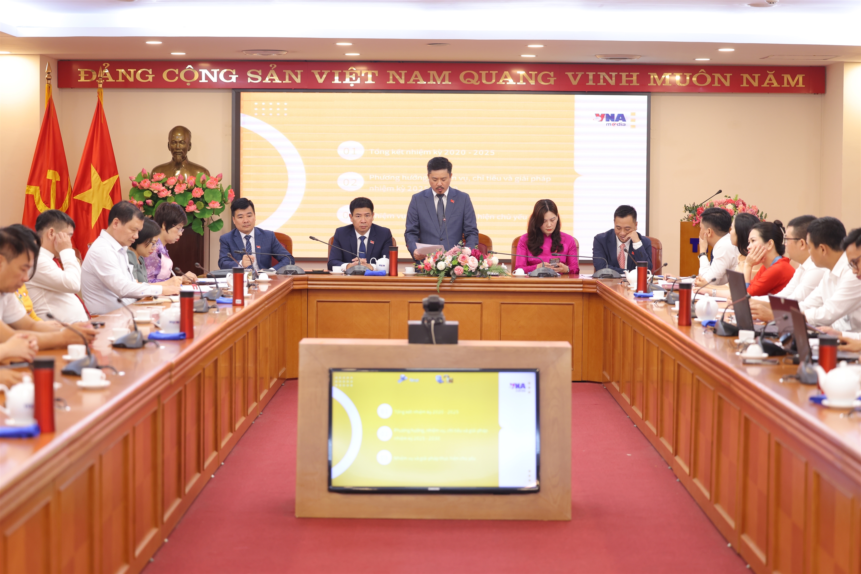 Bí thư Đảng ủy, Tổng giám đốc Vũ Việt Trang đề nghị, nhiệm kỳ 2025-2030, Đảng bộ VNA Media tiếp tục đề cao tinh thần đoàn kết, phát huy nội lực, vượt qua những khó khăn, thách thức trong tình hình mới để hoàn thành nhiệm vụ chính trị, thực hiện thắng lợi Nghị quyết Đại hội đề ra. Để thực hiện mục tiêu “Nâng cao chất lượng thông tin; hiệu quả truyền thông, kinh tế báo chí”, Tổng giám đốc Vũ Việt Trang gợi mở Đảng bộ VNA Media thực hiện 5 nhiệm vụ trọng tâm: Nâng cao chất lượng sản phẩm thông tin số; phát triển các nền tảng truyền thông số; đẩy mạnh quảng bá, tăng cường nhận diện thương hiệu của TTXVN; xây dựng lộ trình tự chủ tài chính; rà soát, cơ cấu lại đội ngũ nhân sự; tiếp tục nâng cao năng lực lãnh đạo của cấp ủy và tổ chức Đảng.