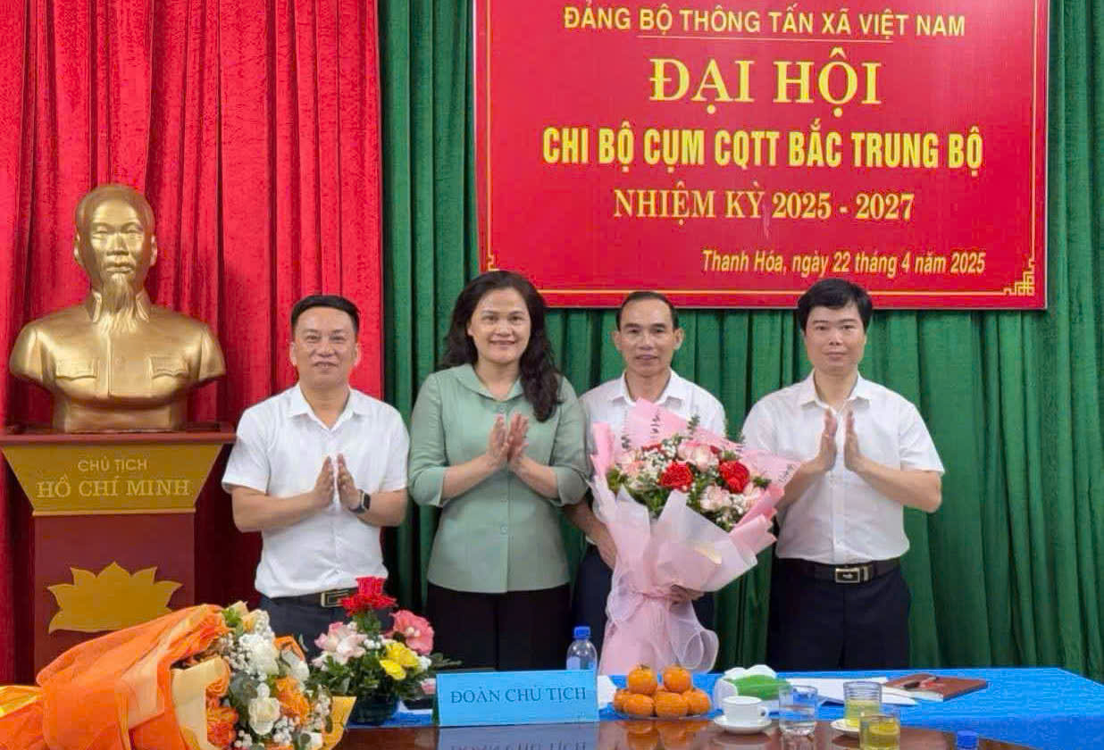 | Phó tổng giám đốc TTXVN Nguyễn Thị Sự chúc mừng Ban chấp hành Chi bộ Cụm CQTT Bắc Trung bộ nhiệm kỳ 2025-2027, ngày 22/4 |