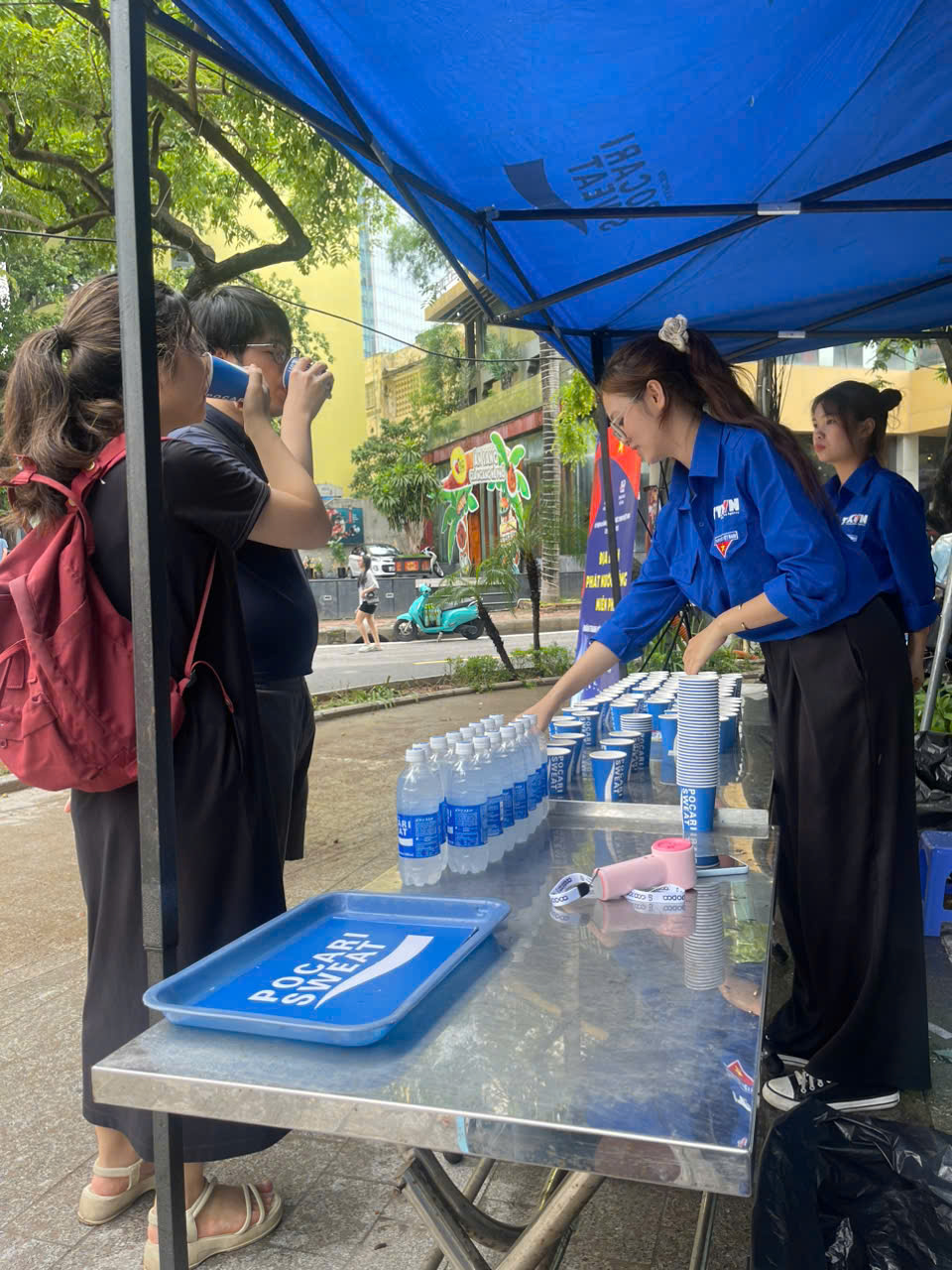 Chương trình “Hỗ trợ và tiếp nước miễn phí cho người dân, cựu chiến binh tham dự các buổi hợp luyện và tổng duyệt diễu binh” do đoàn viên thanh niên TTXVN thực hiện |