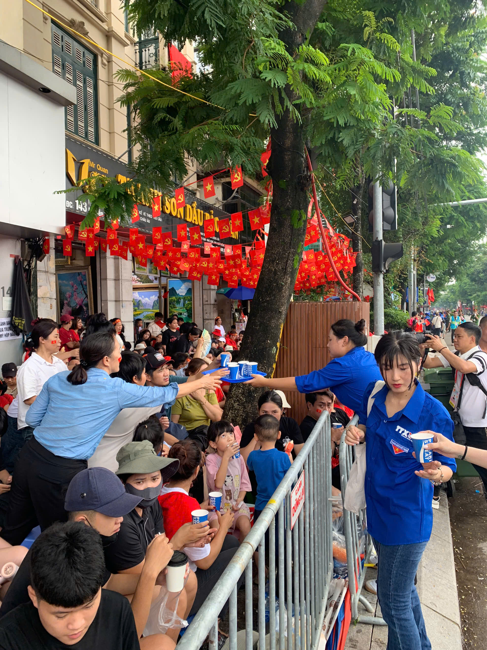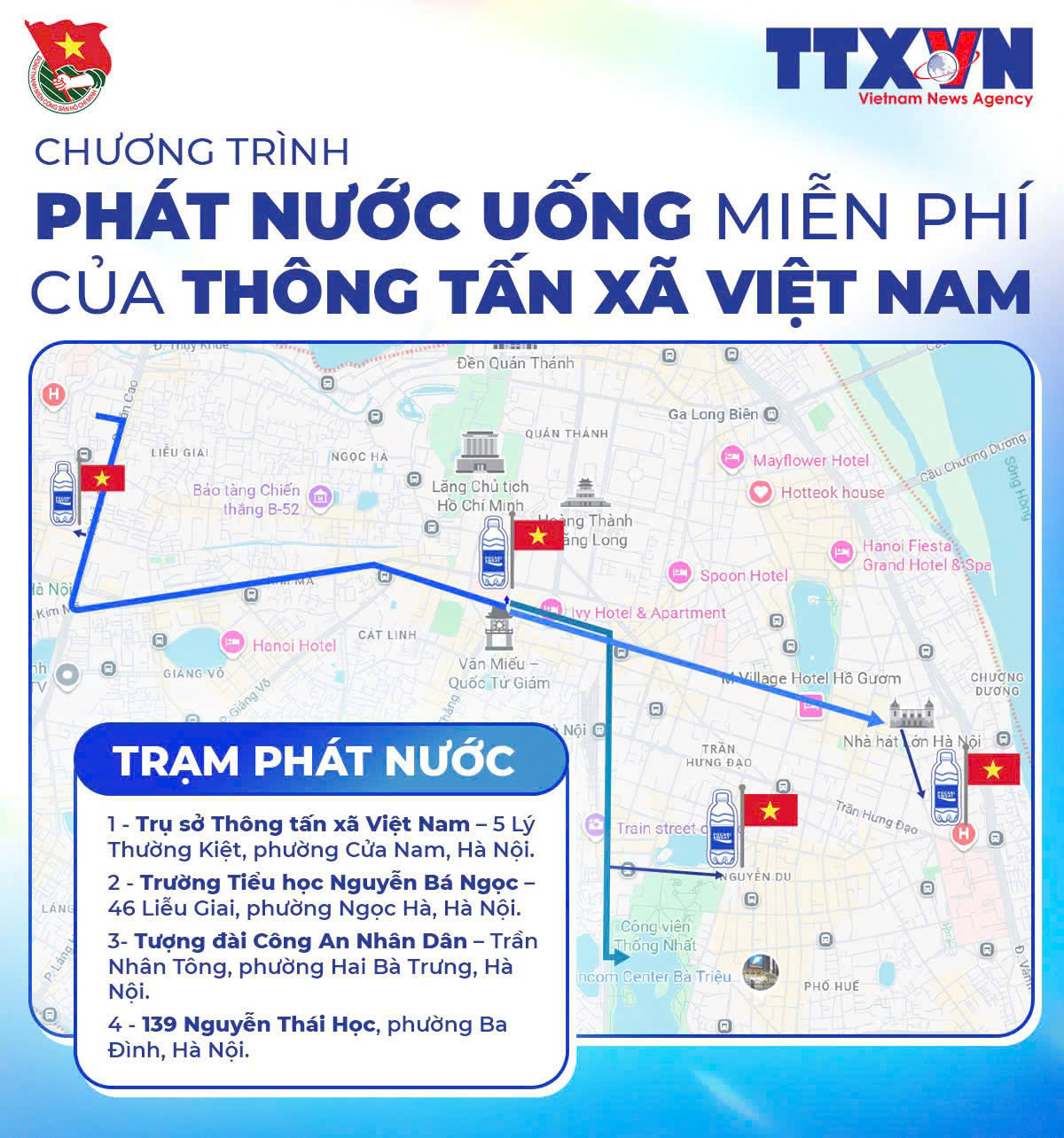 Nhằm lan tỏa tinh thần sẻ chia và tiếp sức cho người dân tham gia các hoạt động nhân Lễ diễu binh, diễu hành kỷ niệm 80 năm Cách mạng Tháng Tám thành công (19/8/1945-19/8/2025) và Quốc khánh nước Cộng hòa xã hội chủ nghĩa Việt Nam (2/9/1945-2/9/2025), Đoàn thanh niên Thông tấn xã Việt Nam (TTXVN) đã tổ chức chương trình “Hỗ trợ và tiếp nước miễn phí cho người dân, cựu chiến binh tham dự các buổi hợp luyện và tổng duyệt diễu binh”.