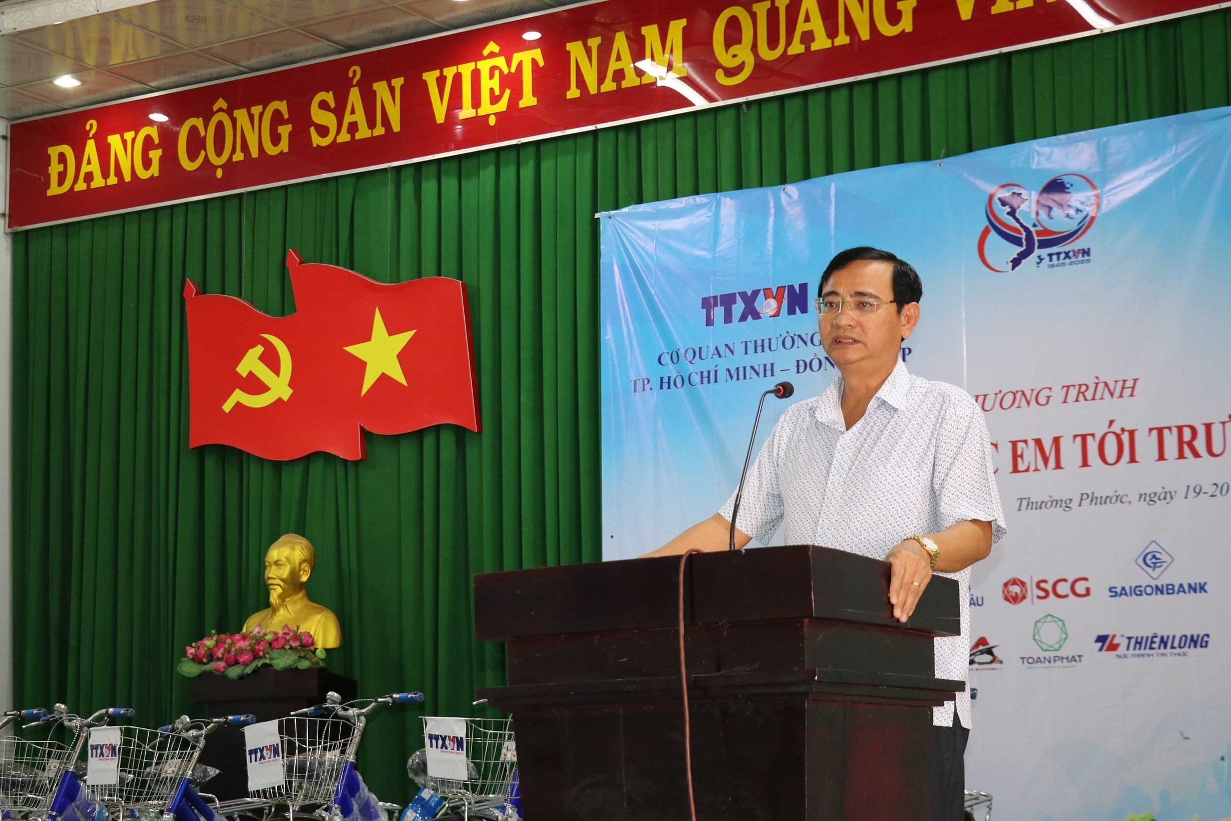 Trưởng Cơ quan thường trú TTXVN tại Thành phố Hồ Chí Minh Hoàng Anh Tuấn cho biết: Chương trình được tổ chức với mục đích hỗ trợ, giúp đỡ, chia sẻ với học sinh có hoàn cảnh khó khăn ở vùng sâu, vùng xa, vùng biên giới. Những phần quà tuy nhỏ nhưng đầy ý nghĩa sẽ là động lực tiếp sức cho các em tiếp tục hành trình học tập cho tương lai.