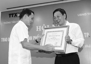 Ghi nhận sự ủng hộ và giúp đỡ nhiệt tình, tích cực của Chủ tịch UBND thành phố Hà Nội Nguyễn Thế Thảo cho sự nghiệp thông tấn trong thời gian qua, TTXVN đã trao tặng đồng chí Kỷ niệm chương "Vì sự nghiệp Thông tấn"