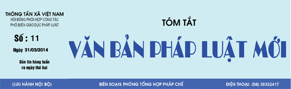 Tóm tắt Văn bản pháp luật mới: Số 11 ngày 31/03/2014 của Hội đồng phối hợp công tác phổ biến giáo dục pháp luật - Thông tấn xã Việt Nam