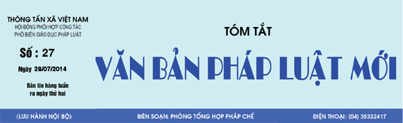Tóm tắt Văn bản pháp luật mới: Số 27 ngày 28/7/2014 của Hội đồng phối hợp công tác phổ biến giáo dục pháp luật - Thông tấn xã Việt Nam