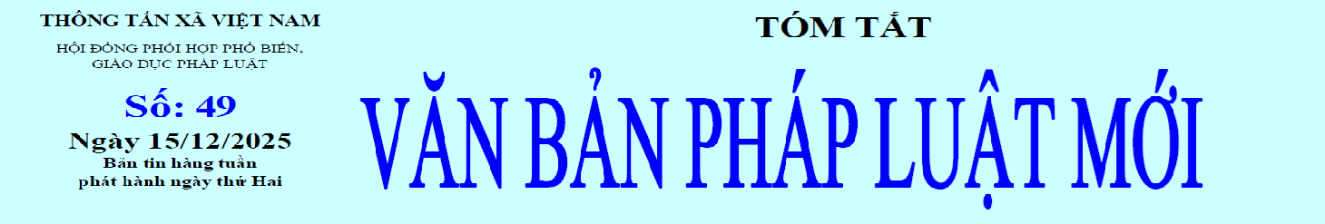 Tóm tắt Văn bản pháp luật mới: số 49 ngày 15/12/2025 của Hội đồng phối hợp Phổ biến giáo dục pháp luật TTXVN