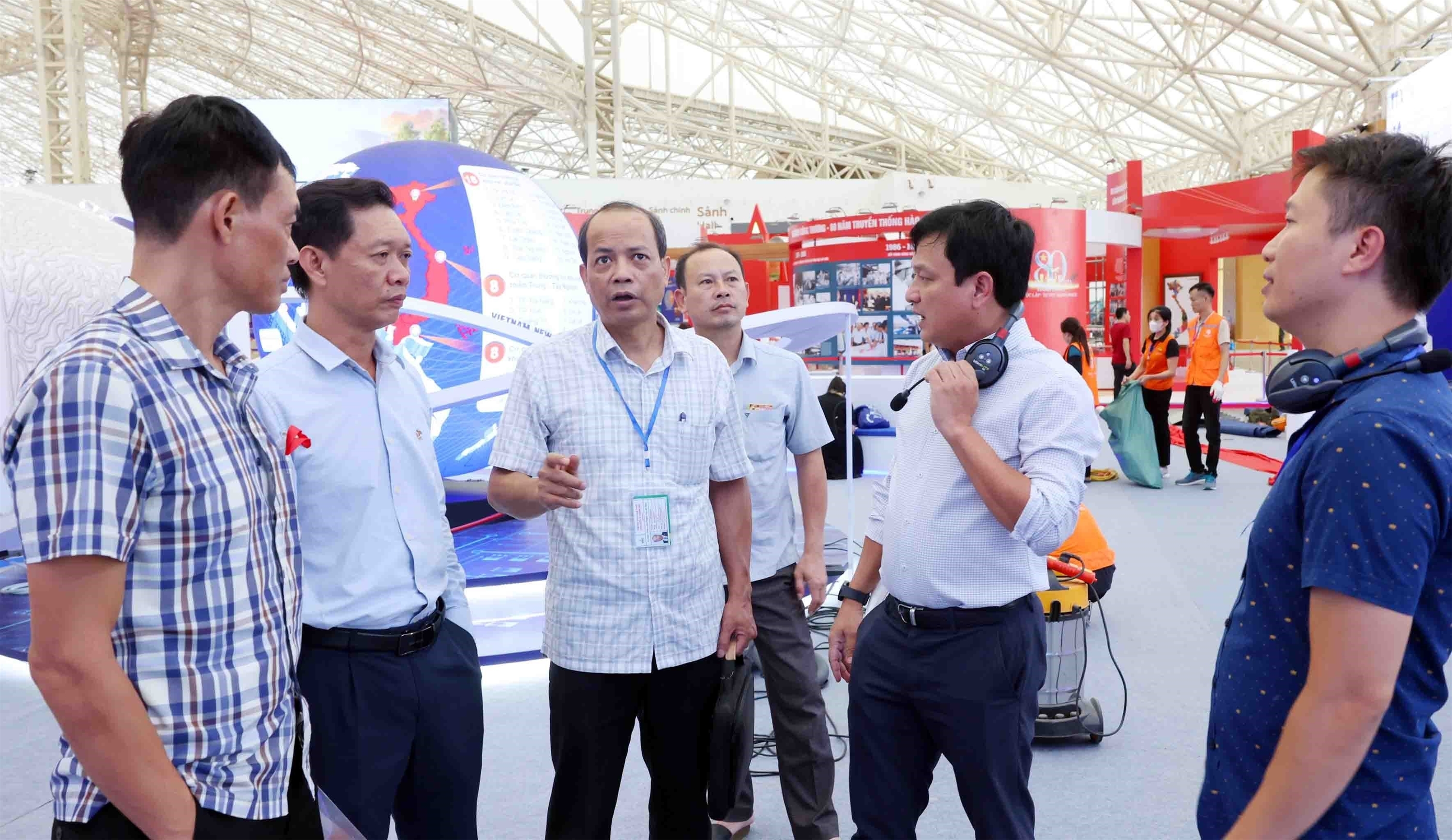 Để đảm bảo gian trưng bày của Thông tấn xã Việt Nam (TTXVN) tại triển lãm được hoàn thiện tốt nhất, sẵn sàng đón các đại biểu, khách tham quan vào ngày khai mạc Triển lãm, chiều 24/8, Tổng giám đốc TTXVN Vũ Việt Trang, các Phó tổng giám đốc cùng lãnh đạo các đơn vị của TTXVN đã có buổi kiểm tra các hạng mục, nội dung trưng bày./.