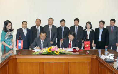 | Đồng chí Nguyễn Đức Lợi, Ủy viên Trung ương Đảng, Tổng giám đốc Thông tấn xã Việt Nam và ông Sounthone Khanthavong, Tổng giám đốc Hãng thông tấn KPL Lào ký Biên bản ghi nhớ hợp tác. (Ảnh: Doãn Tấn - TTXVN) |
