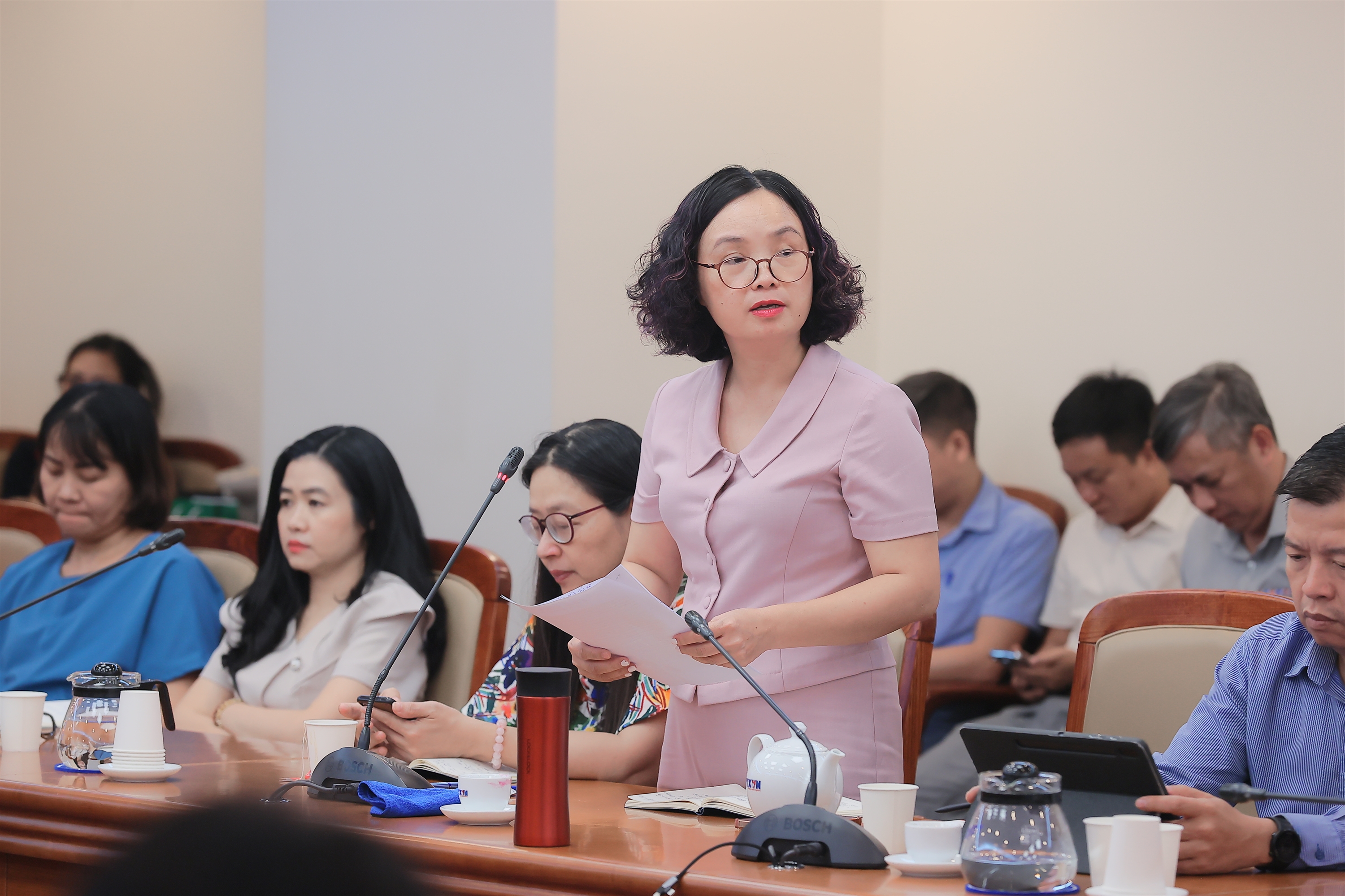 | Bí thư Chi bộ, Giám đốc Trung tâm Thông tin tư liệu và Đồ họa Phạm Phương Thảo trình bày tham luận tại Hội nghị, ngày 9/7 |