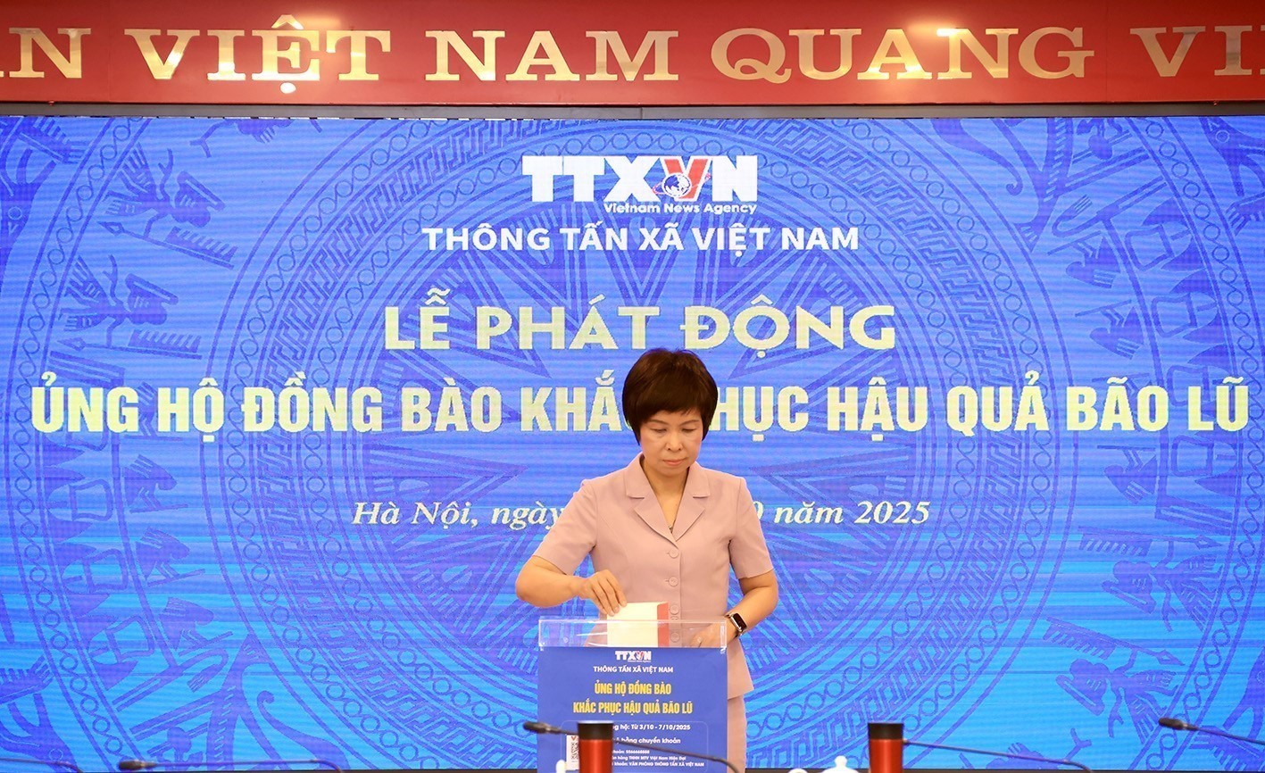 Hưởng ứng lời kêu gọi của Ủy ban Trung ương Mặt trận Tổ quốc Việt Nam, chiều 3/10, tại Trung tâm Thông tấn quốc gia, Thông tấn xã Việt Nam (TTXVN) tổ chức Lễ phát động ủng hộ đồng bào khắc phục hậu quả bão lũ, theo hình thức trực tiếp và trực tuyến kết nối các điểm cầu: Trung tâm Thông tin TTXVN khu vực Miền Trung - Tây Nguyên; Trung tâm Thông tin TTXVN khu vực phía Nam; Công ty TNHH MTV ITAXA.