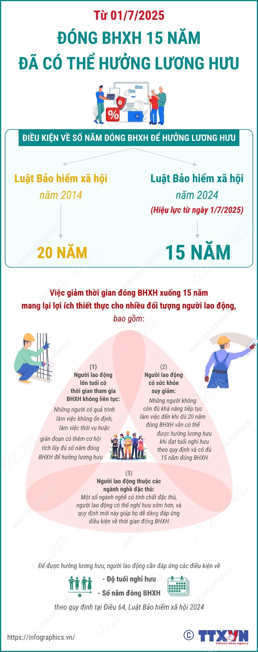 Từ ngày 1/7/2025, đóng BHXH 15 năm đã có thể được hưởng lương hưu